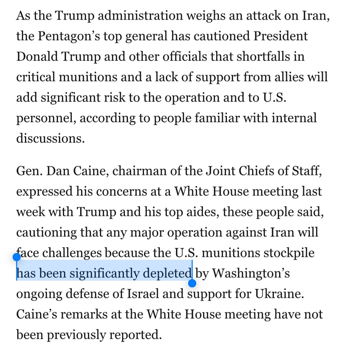 >>2707835but by how much? the US and israel don't have the production capacity to make up for what was previously expended in 8 months