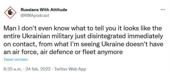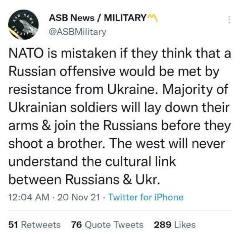 >>2703142>>2703143The Ukrainian “army” was literally routed within the first two weeks of the SMO. What they’ve been doing since is protecting Russian speakers and fighting NATO mercenaries