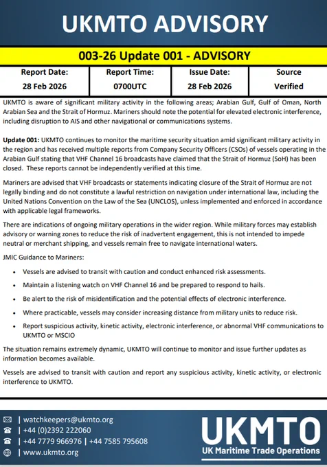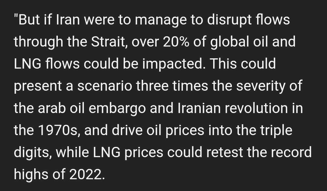 >>2708808Okay nevermind. Hormuz is blocked. Maybe its just because of the war and not Iranian policy though and will resume eventuallt?
