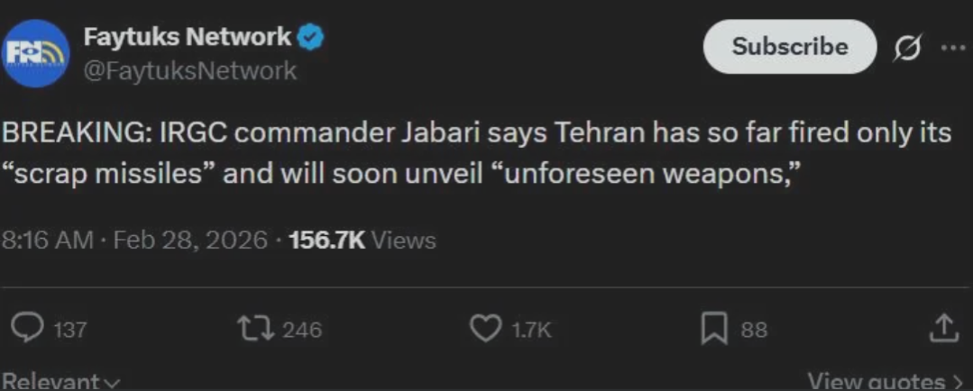 Am I wrong in believing the heaviest strikes aren't even being broadcasted online? Like Israeli assassination attempts in Tehran or supposed Iranian missile hits on Unit 8200, all we get is like a drone hitting some Gulf Arab shithole
