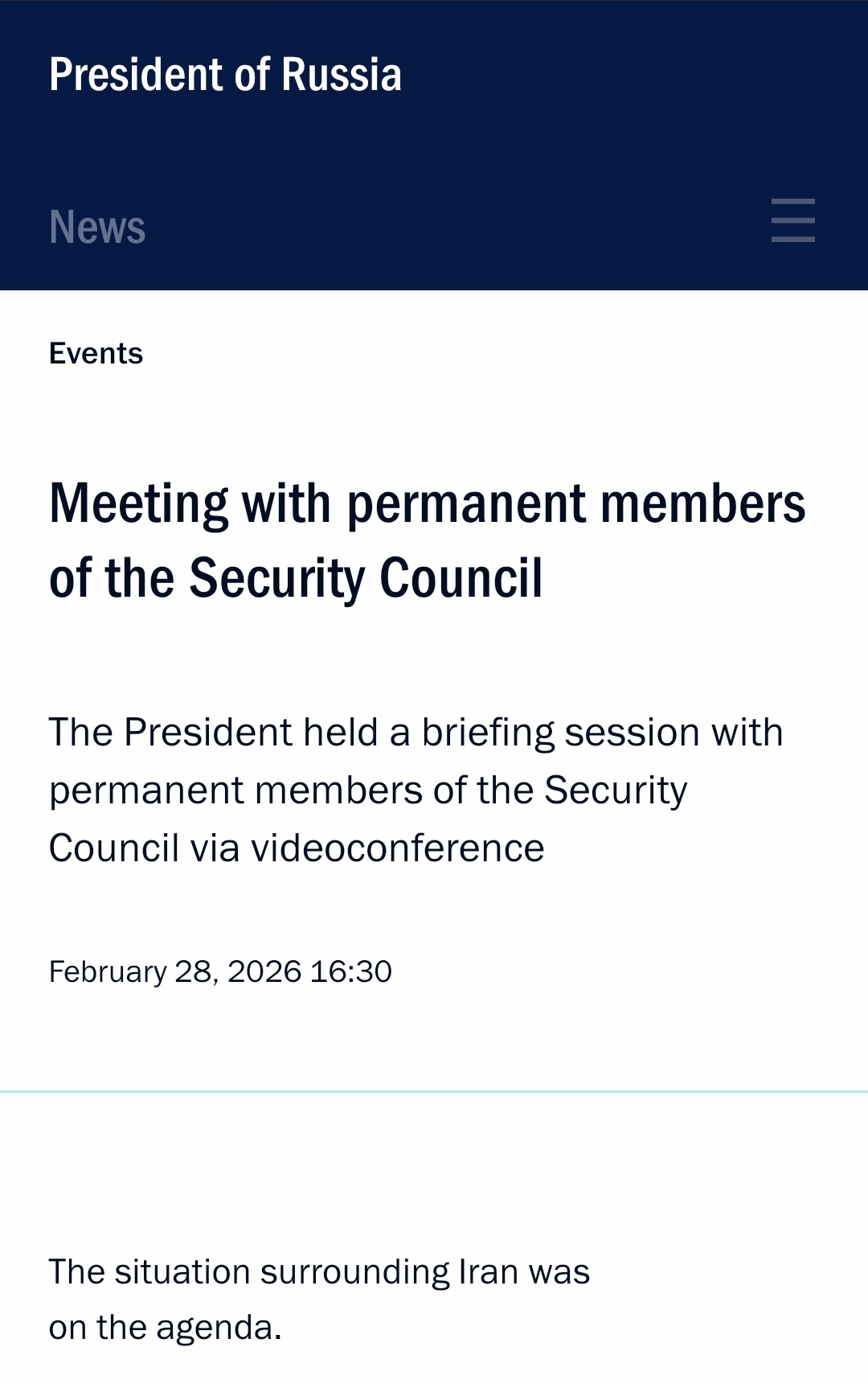 >>2709066>China and Russia have asked for an emergency meeting of the UN Security Council.The UN announced that the Security Council will hold a meeting today at 9 pm GMT to discuss the "situation in the Middle East" following the US and Israeli attack on Iran.