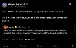 >>2709135Lindsey Graham isn't in the loop so he thinks he's still alive, but he wants to sound hard on Twitter