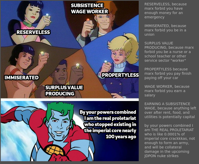 >>2712763 >>2712594People bickering over what constitutes "the proletariat" as if it is anything more than a wage worker is always either thinly disguised nationalism or some form of pseudo-Marxist "noble savage" fetishism.