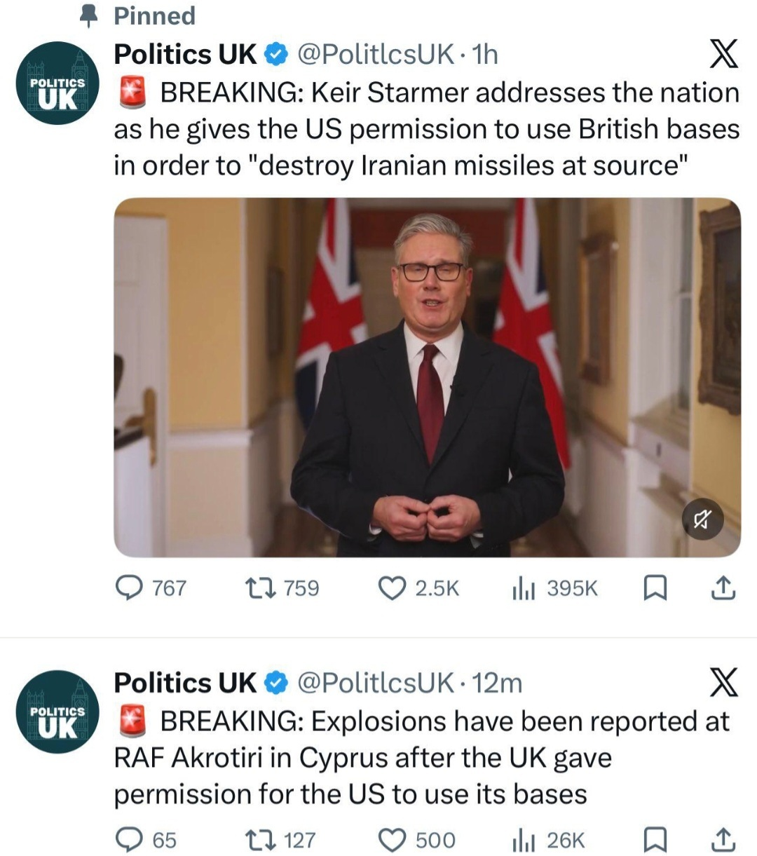 In a recorded statement, Starmer said, “The only way to stop the threat is to destroy the missiles in their depots or launch pads.” He stated that the U.S. requested permission to use the bases for this specific and limited defensive purpose, and that they granted the request to prevent Iran from launching missiles into the region and targeting civilians.