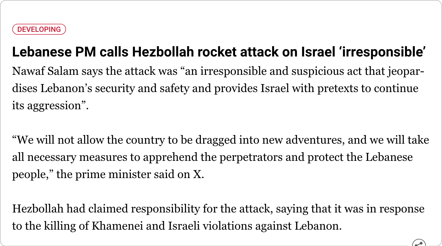 BREAKING: ROCKETS FIRED FROM LEBANON TOWARDS ISRAEL. HEZBOLLAH CHADS HAVE ENTERED THE FRAY
