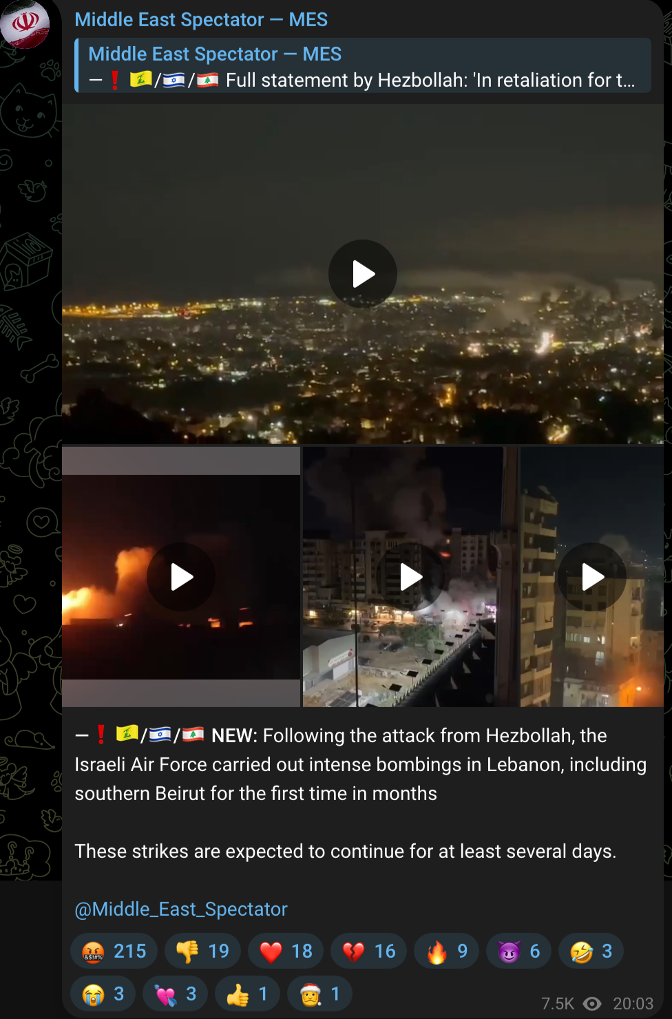 The targets we've seen are the same evac'd structures that we saw last time, and everyone copes by dropping unverifiable claims about CIA/Mossad glowies being present.