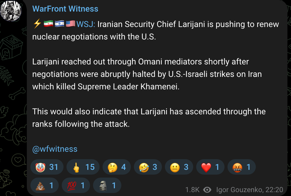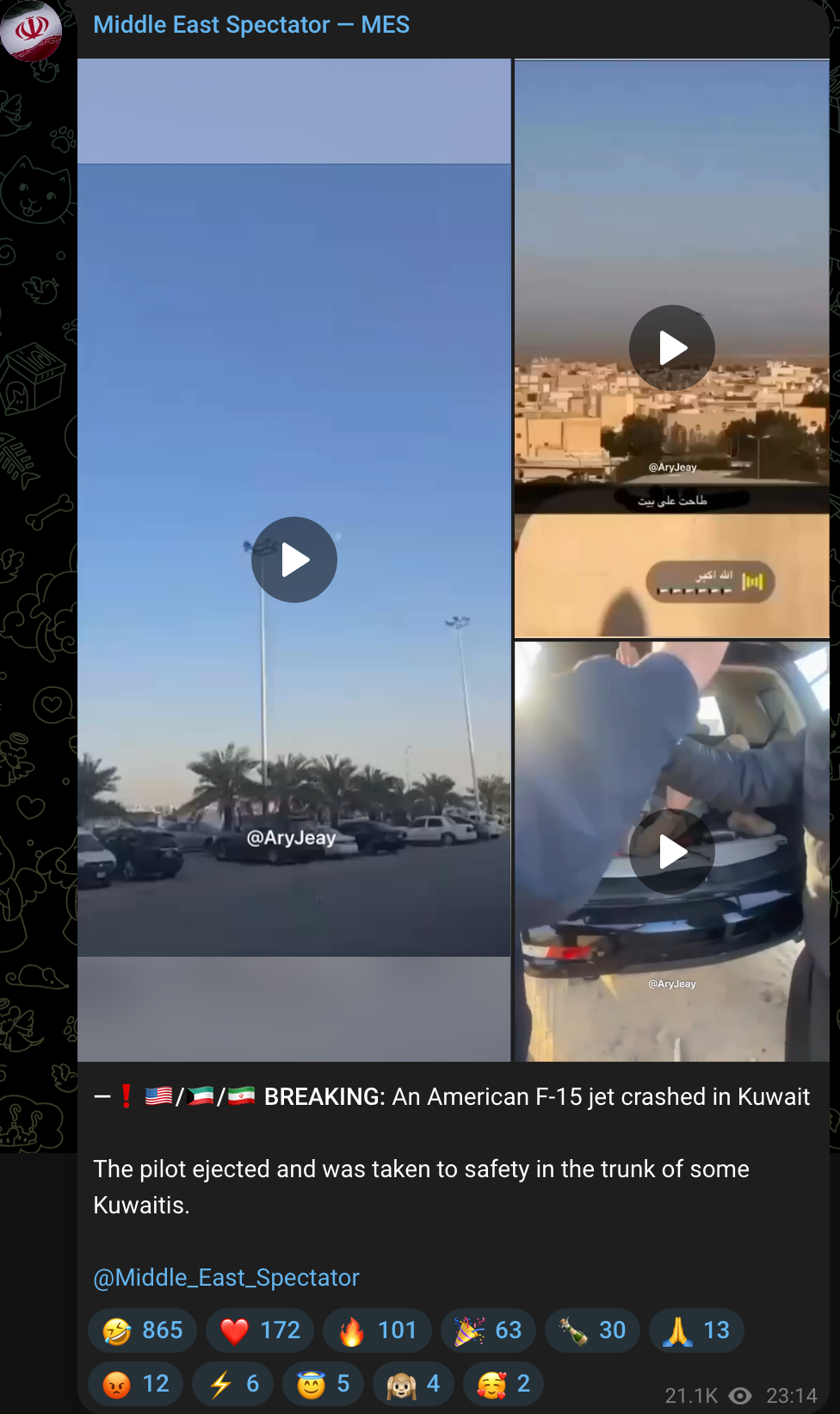 ngl this war has had the worst fog of war I've ever seen with all the misinformation and AI spam. literally the only way to determine what's "real" is when state-sponsored media reports it.