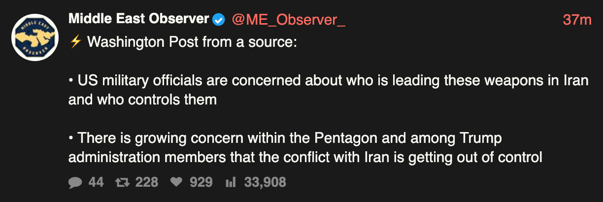 I think the real thing that made them push for this now was the protests. I think they, or some of them thought, that meant they could get a civil war started, but if you look at it, that's dumb as hell. They're claiming Iran killed 30k of the people who would take to the streets for regime change, and locked up however many more multiples. Those are obviously their best potential operatives, just got taken out of the equation. It doesn't make sense to start it right after that. I think they don't have enough of a network in Iran currently, what would've been wiser would've been to wait and see if they can build their local network, then do all the rest of this in coordination. But I think that they rushed this because of the impending midterms. I think for sure Trump was moved by the protests thing, he's dumb enough to believe their made up figures and be moved emotionally when they're like "this horrible thing is happening to these innocent people Mr. Trump and you can stop it! This is how you win your peace prize!" I think maybe the politicians involved are dumb enough to believe this uprising thing would be a shoe-in. I don't think Netanyahu and all the military and intelligence guys are that dumb and they're looking at real info me and you can only speculate about. I think they have a much more realistic appraisal of what was possible and what was likely and they were still like "worth it!" That's who's really calling the shots is the ones that are smart enough to know all this shit. The dumb ones like Trump are just along for the ride. Don't pay attention to them so much because you won't learn a damn thing because they don't know what's going on anymore than you or me.