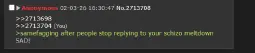>>2713698>>2713704>samefagging after people stop replying to your schizo meltdownSAD!