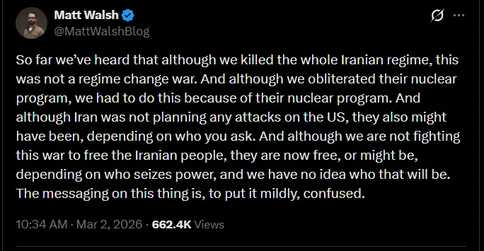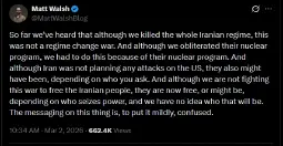 There are a lot of lolbertarian soldiers but they mostly have a right-wing utilitarian critique about how the wars need to be run smarter. Notice that he’s fine with Israel being a proxy for U.S. power in the region which only makes sense if you buy into Israel as a concept in the first place. They end up being useful idiots because they will huff-and-puff about poor military strategy and needless casualties, but will refuse to go for the capitalist’s throat.