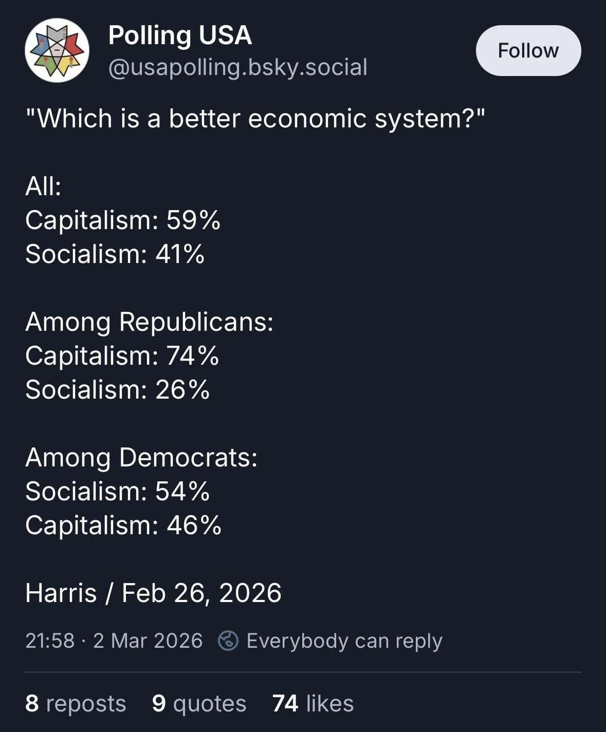 https://strawpoll.com/PKgleOB3EZp/resultsbut yeah the dislike numbers are comparable to felix. Half the people hate felix, half the people hate cpusa anon. interesting ngl