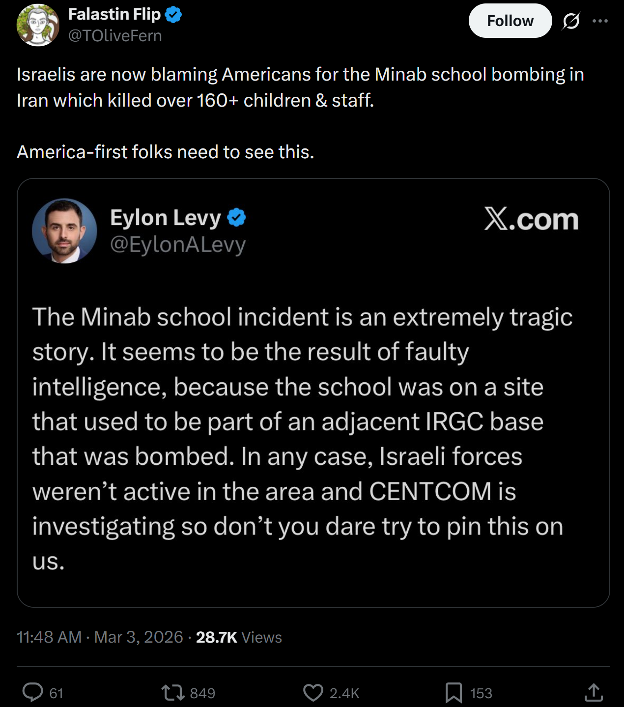 >>2713320don't think about it too hard. this guy hated us for our freedom. the only solution is to give 3049059345305984 trillion more dollars to israel and to glass iranian schoolchildren