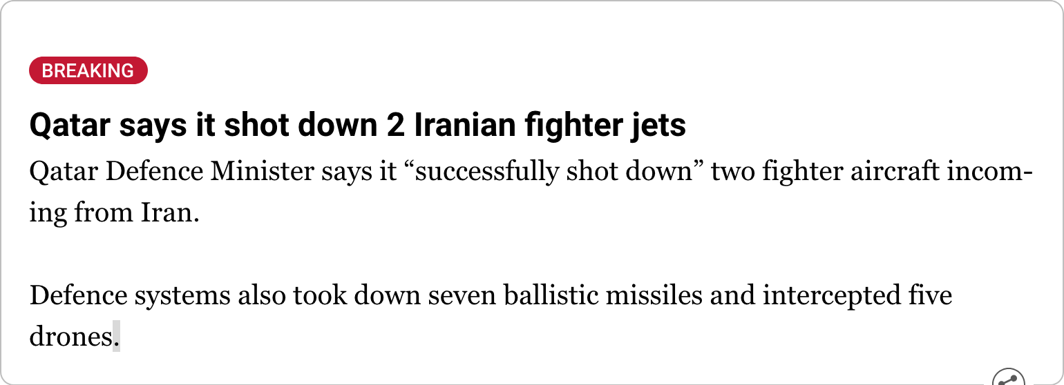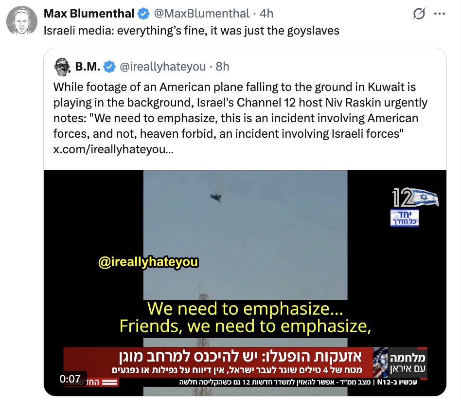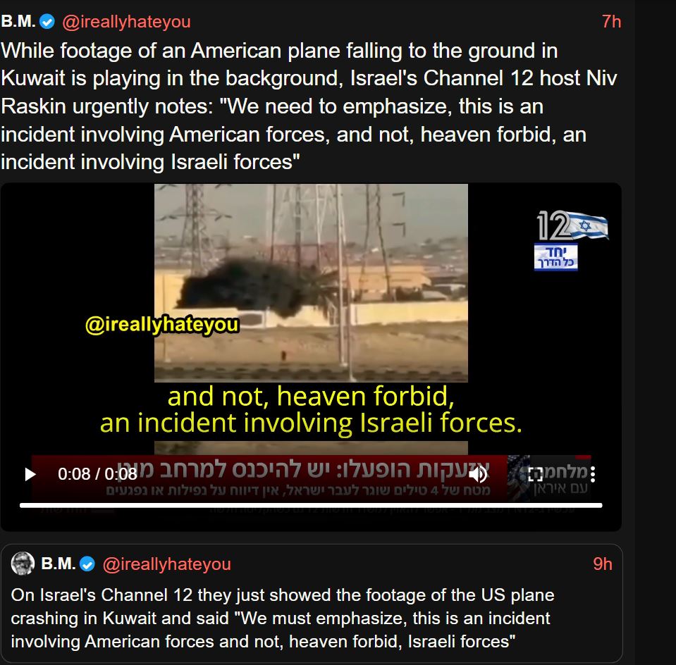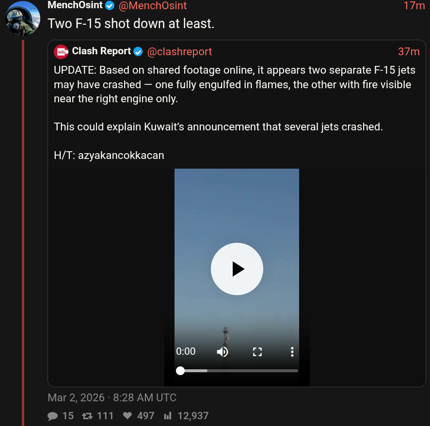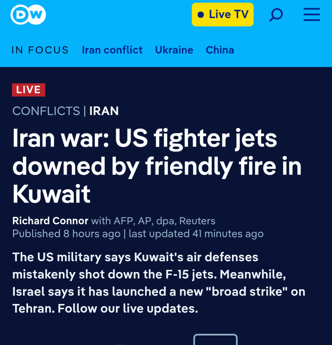 >—❗️🇺🇸/🇮🇷/🇰🇼 NEW: A U.S. official confirms an American F-15 jet was downed in Kuwait in a 'friendly fire incident'
