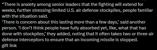 >>2713794>Here's a couple of other things. Don't be too sad about Iranian missiles failing to get through interceptors, because that's kind of the POINT of Iran firing those missiles. Yeah, I for one am looking forward to the AD depletion. That's when the REAL attack begins, when we see Iran move from hitting empty barracks to hitting scrap-metal depots.