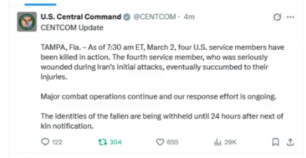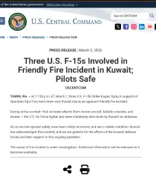 At 11:03 p.m. ET, March 1, three U.S. F-15E Strike Eagles flying in support of Operation Epic Fury went down over Kuwait due to an apparent friendly fire incident.