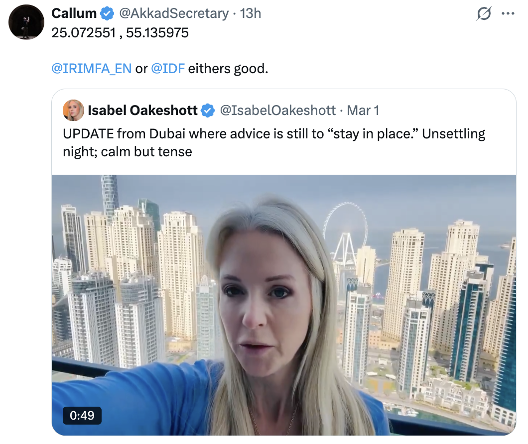 I understand being NEH-brained but be realistic, Iran doesn't have nukes and are engaging in strategic strikes on core infrastructure instead.