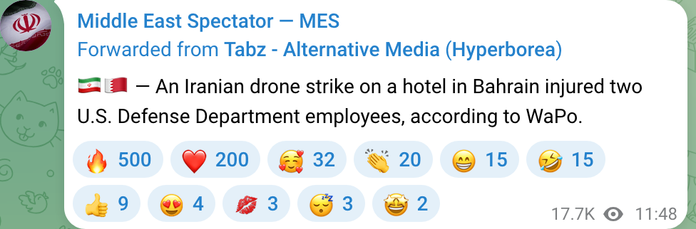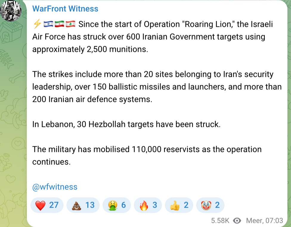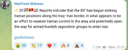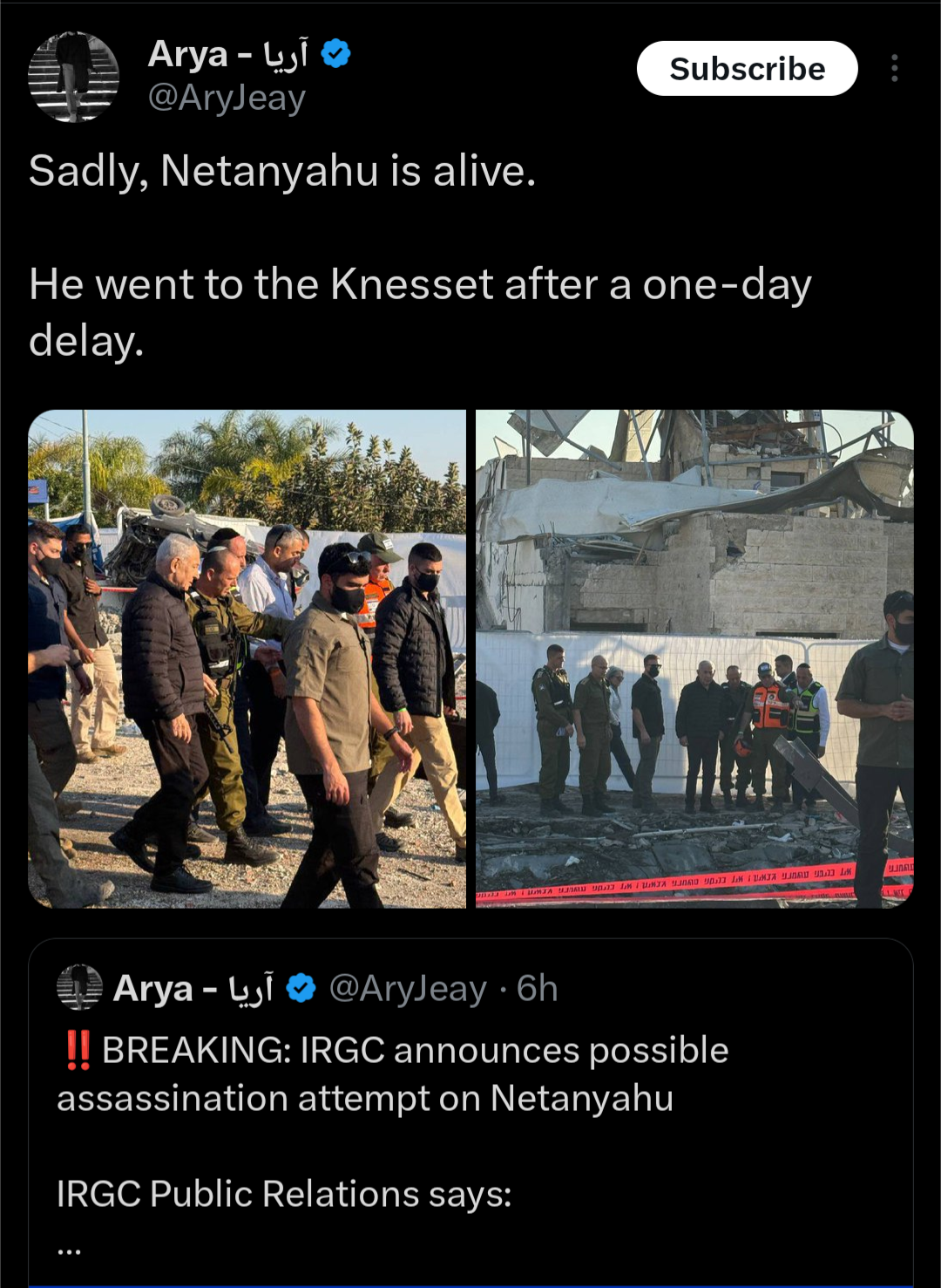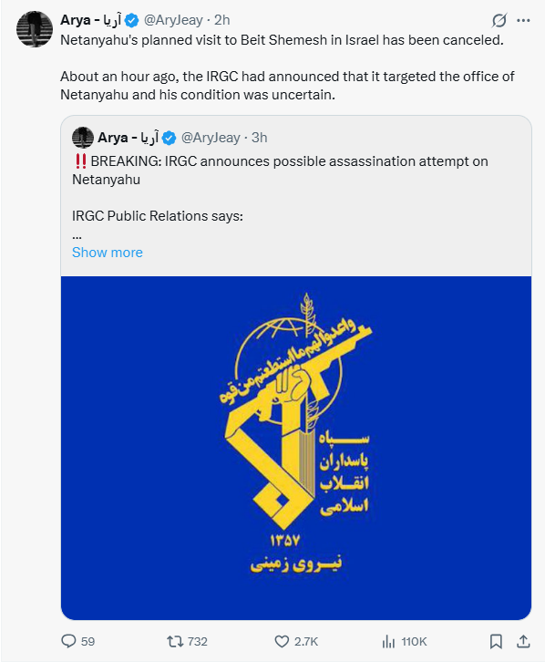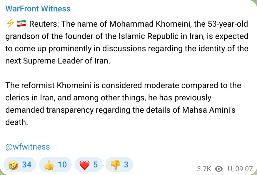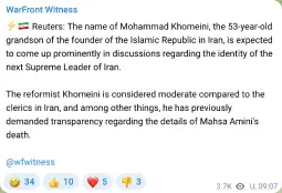 Mohammad Raad, leader of Hezbollah, has been killed in retaliation strikes after Hezbollah fired rockets into northern Israel. Technically not Iran news but they did attack because the jews were too distracted.