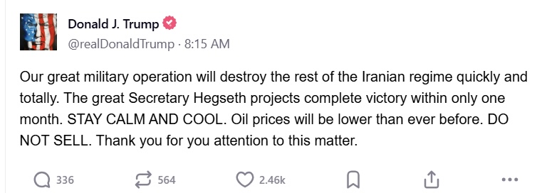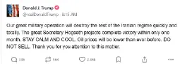 In his rambling speech, Trump also referred to his comments in an interview to Daily Mail on Sunday, where he had said that the military campaign against Iran could last upto four or five weeks.