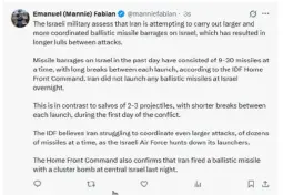 10th wave of missiles launched at israel