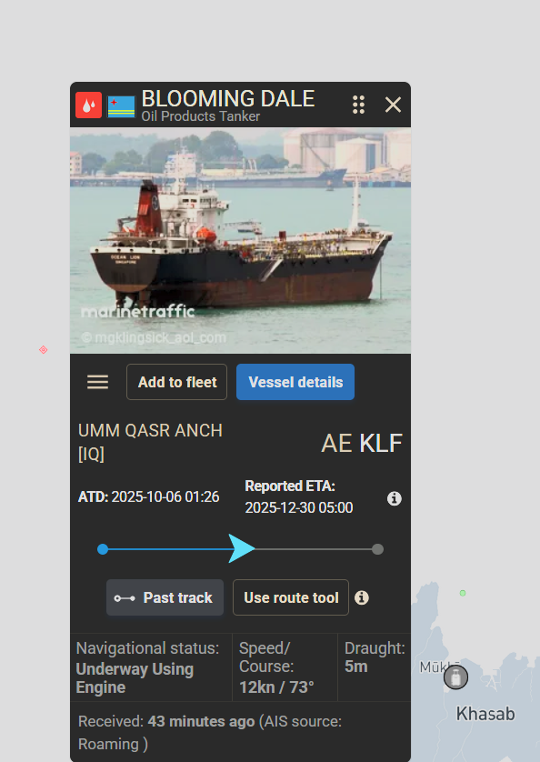 >>2715575I've only seen an indian flagged tanker pass through, but it was earlier this evening.