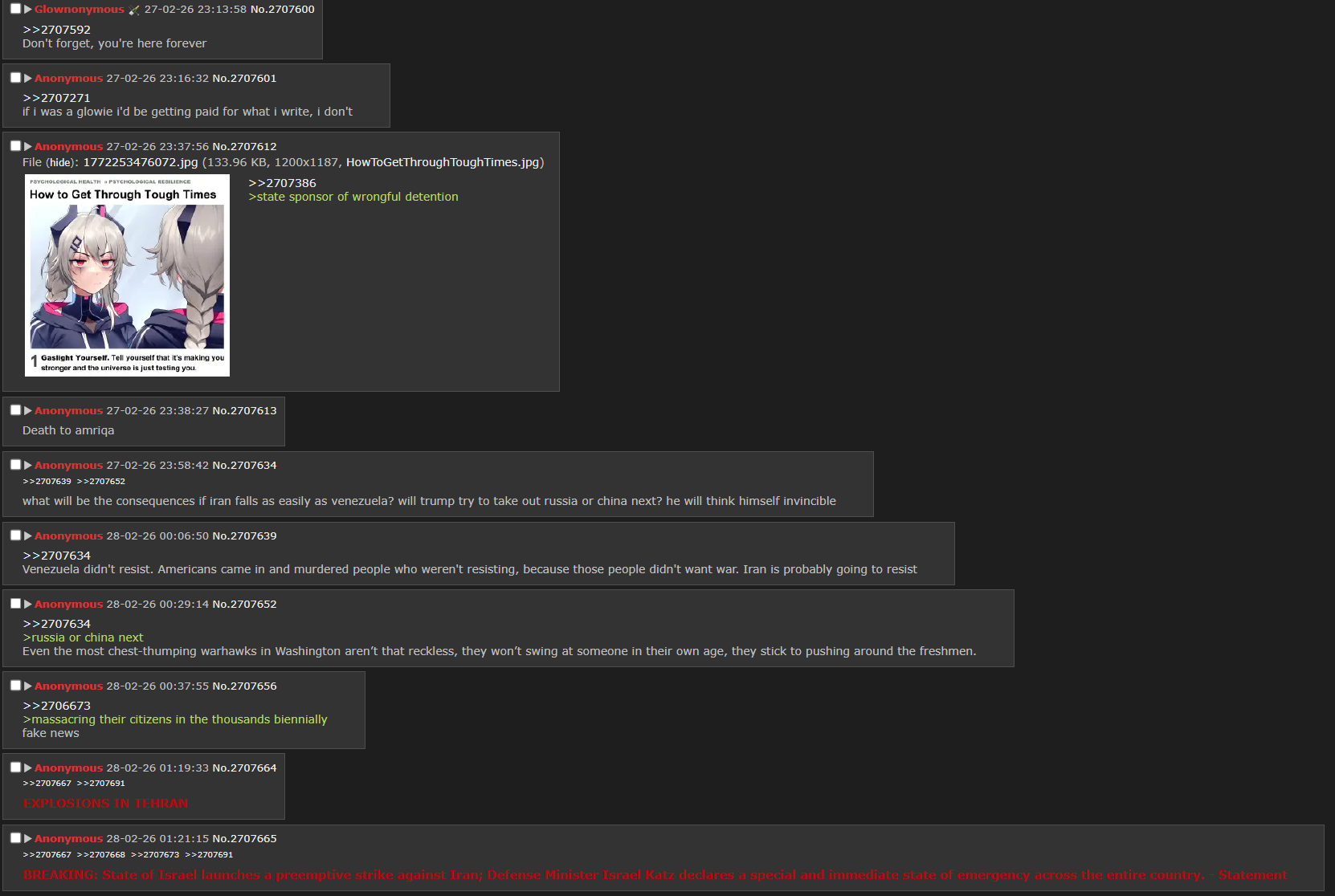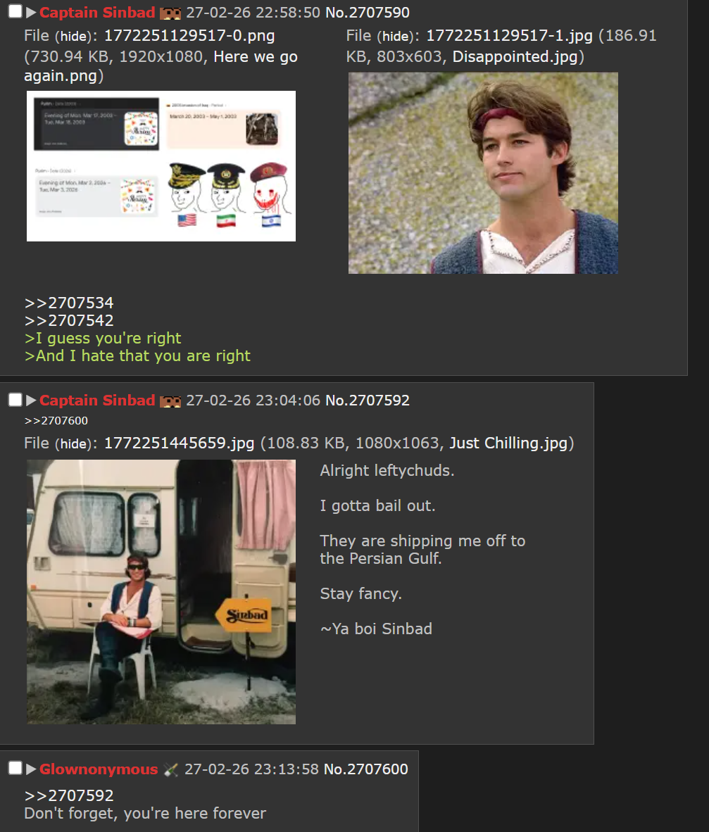 >Useful TG:https://t.me/s/wfwitnesshttps://t.me/s/Middle_East_SpectatorRecap:>Khamenei died>Iran is fighting back better than before>Iranian school was bombed by zogbots, a lot of kids died>Satanyahoo is shitting his pants>Orange dude is shitting his pants (literally)>Saudi Oil facilities bombed>Three US jets shot down>US bases across the region bombed and abandoned>Israeli AD failing>Hezbollah joining the fight >IRGC still standing after Khamenei's assassination>Trump's largest ever naval "armada" hiding miles away from the fight>No US or Israeli air superiority over Iran>Arab states are cucking themselves even more as we speak>Russia is being retarded like usual>China is doing nothing like usual>Stuff ain't looking good