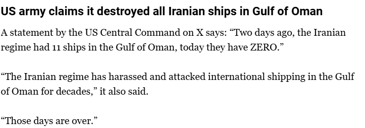 Two days ago, Iran had 11 ships in the Gulf of Oman. Today, they have 0. I'm wondering when they're gonna start using their hypersonics.