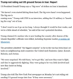 Trump said he has not ruled out the possibility of a ground force in Iran.