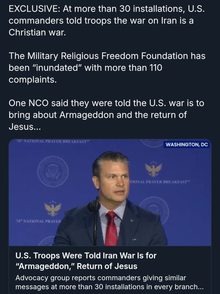 >>2716143there's been a lot of talk over the past few years about how the US Christofascist regime's endgame is to bring about the rapture but I'll be surprised if they actually are going for it with this war