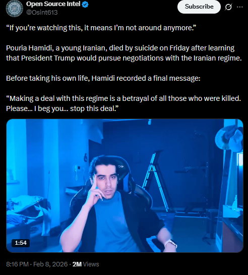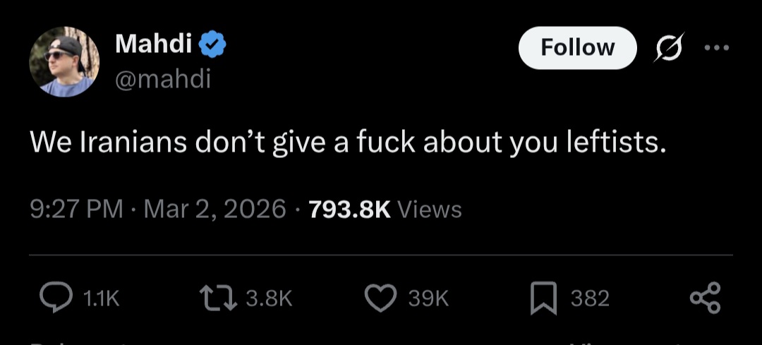 Daily reminder that Trump and the Pentagon actually believed that the Iranian population would be overthrowing the regime by now. Daily reminder that the ruling class believes the propaganda it spreads.