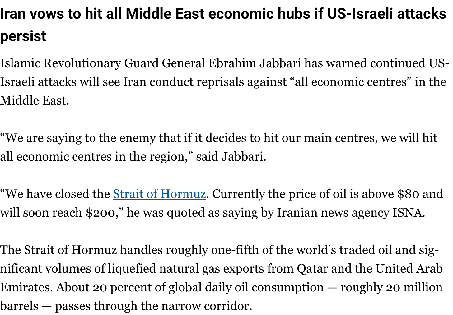 Hormuz status?