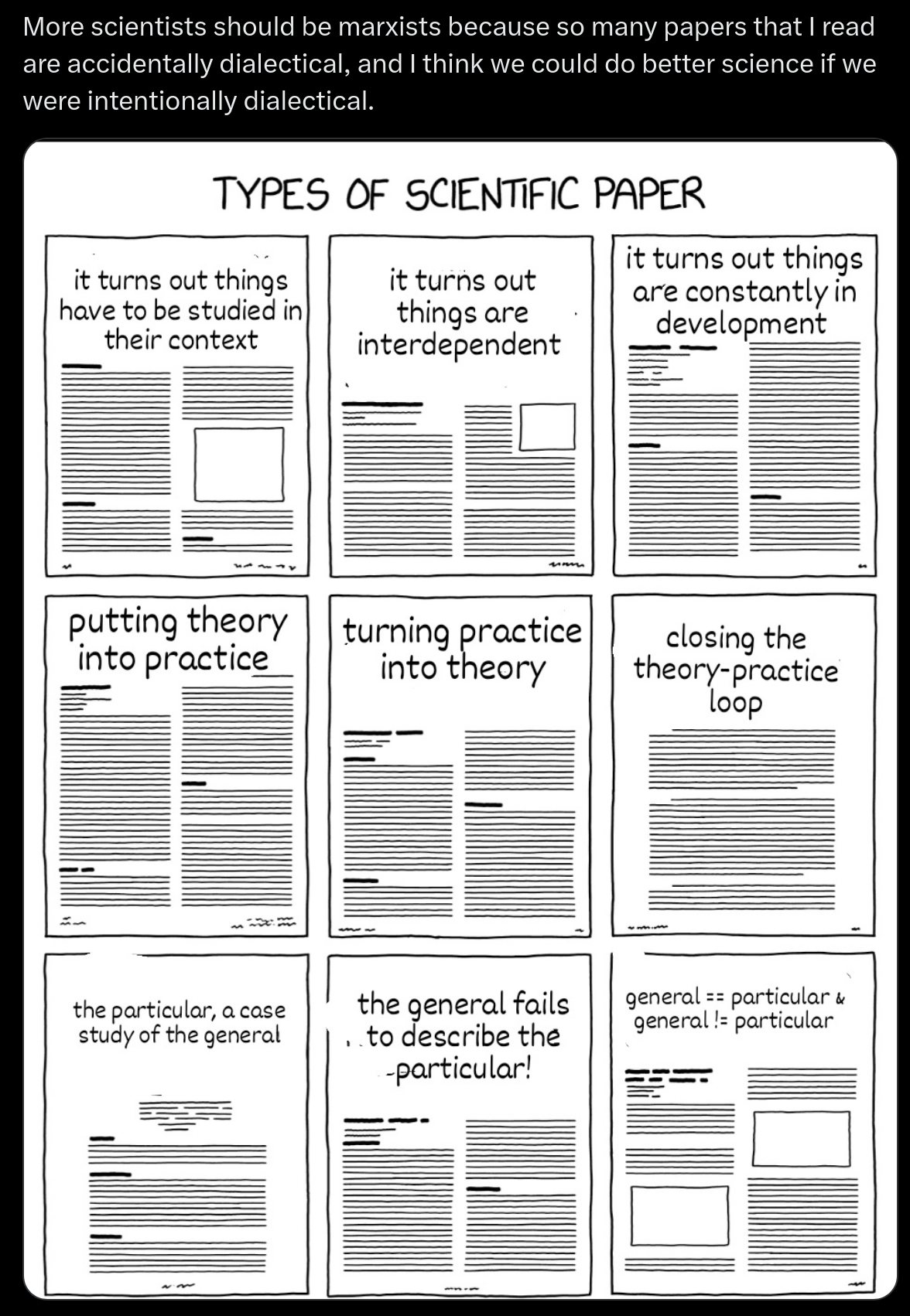 >>2719390Marx never actually promoted a worldview of "dialectical materialism" thoughever, but only applied dialectics to social phenomena (e.g. History, as class struggle), which he saw as the development of labour abstracted as commodity and property, which through its dynamism, establishes a movement toward its spiritualisation (e.g. the self-moving substance, or "money in motion"; capital) and its abolition (e.g. the negation of negation of capital) which entails returning man to nature, and so ceasing his dialectical motion (e.g. Man-as-Man becomes positively conceived and thus gains self-determination, rather than contingency). This is why Communism can also be linked to "primitive" human society, which Marx clearly imagines man being free within, but only by the capacity of natural oppression. By the socialisation of Nature, Man thus controls his own destiny, by disciplining its organs of production to his own needs.
