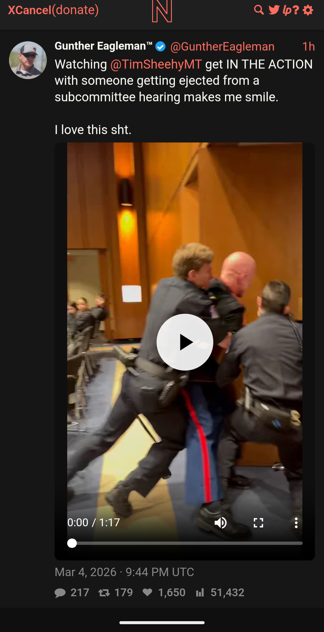 https://www.mediaite.com/media/news/watch-wild-moment-gop-senator-helps-toss-ex-marine-protestor-out-of-hearing/Video
