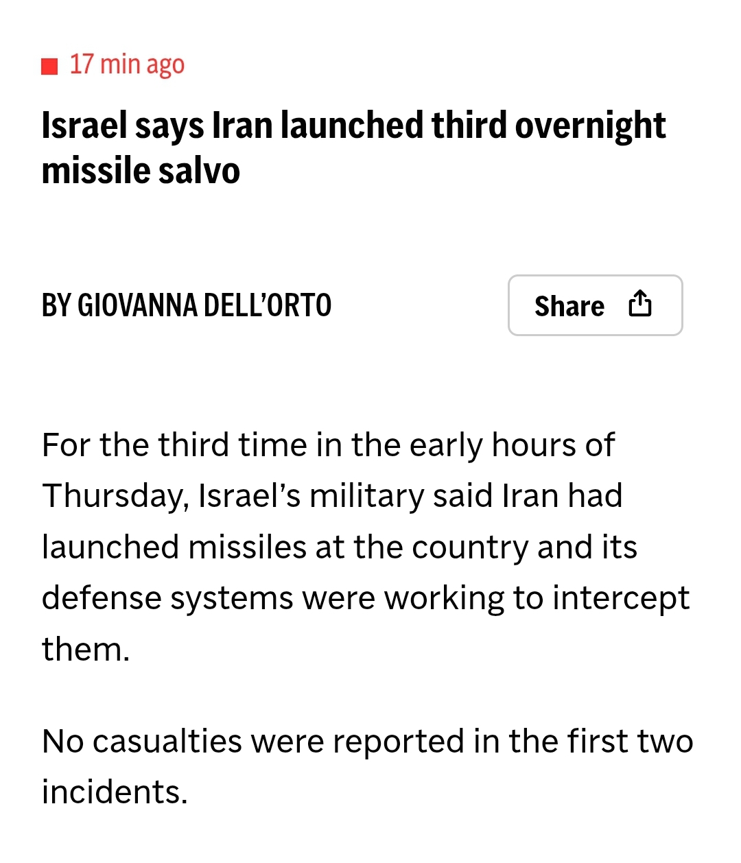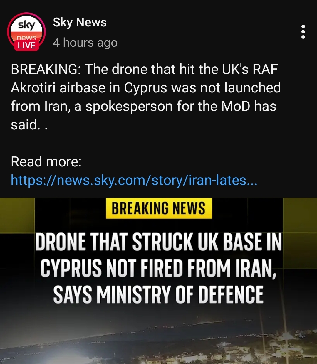 04:18 - Iran: Islamic Revolutionary Guard Corps: Launch of the 19th wave of Operation "True Promise 4" in the form of a combined missile and drone operation