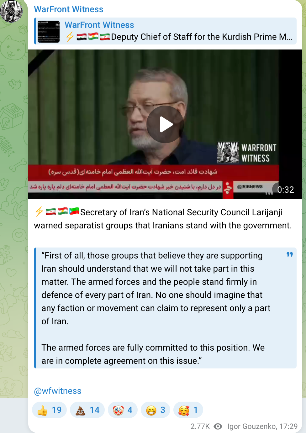 >>2720672Based. Iran needs to highlight more of these Kurds and Balochis that aren't traitors.