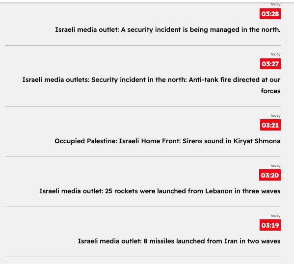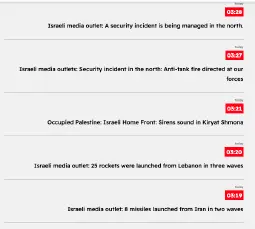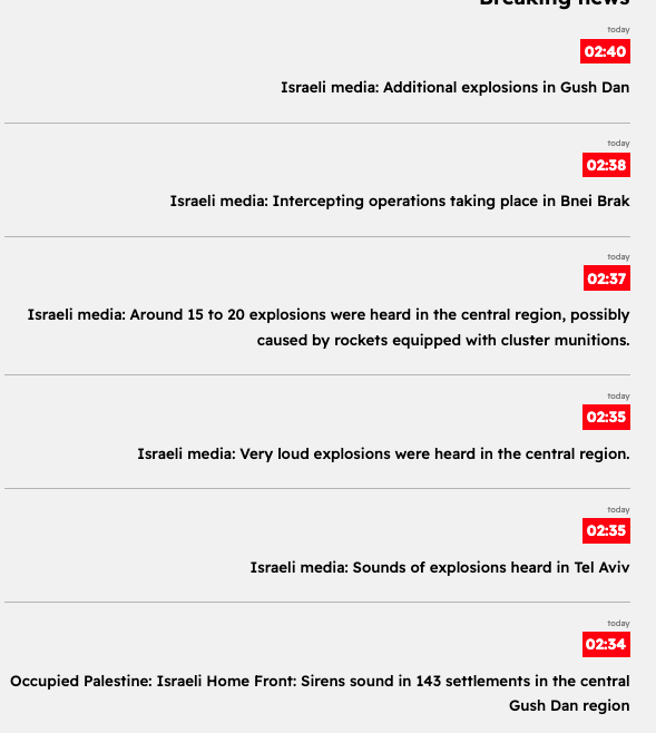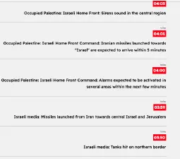 04:16 - Palestinian media: A new batch of Iranian missiles has been spotted arriving in the skies over occupied Palestine.