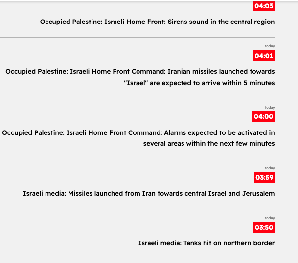 04:20 -Occupied Palestine: AFP: Explosions heard in Jerusalem following Iranian missile alert