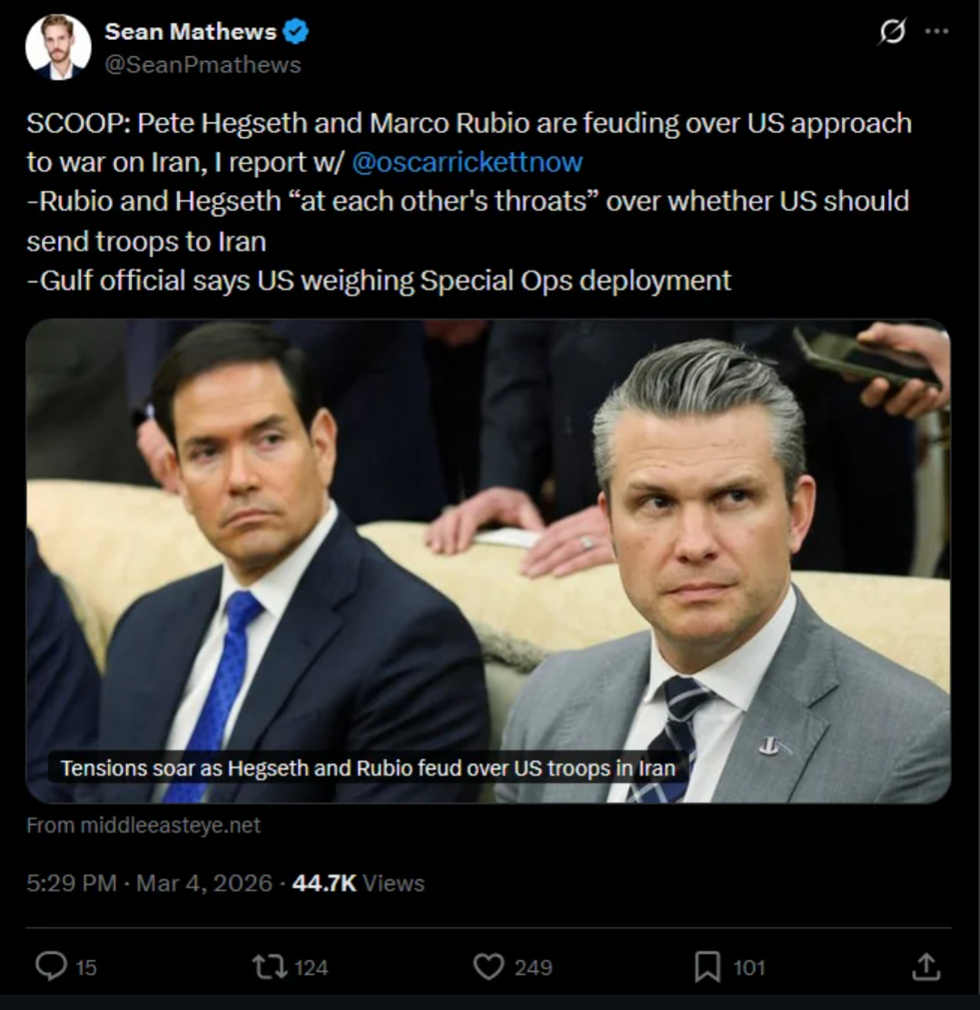 >>2721011We need to find a way to freeze out Rubio from the decision making and get Kegseth gooned up on 18+ teen porno videos, cocaine and liquor.