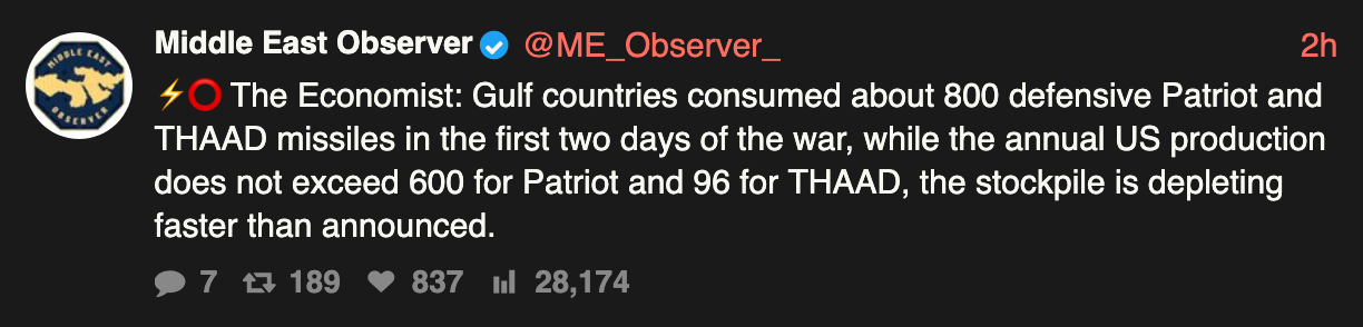 >"Customers have emerged who are willing to buy the same natural gas at higher prices, in this case due to events in the Middle East, the closure of the Strait of Hormuz, and so on," he said. "This is natural; there's nothing here, there's no political agenda — it is just business." >>2720601You can’t export oil if you’re being bombed and occupied.