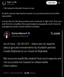 KURDISH SURCES FROM MULTIPLE PARTIES AND FACTIONS ARE DENYING ANY ATTACK FROM BASHUR (IRAQI KURDISTAN) INTO ROJHILAT (IRANIAN KURDISTAN)