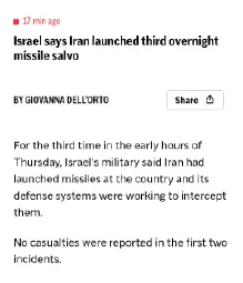 Israeli media: According to reports, some of the missiles launched by Iran last night were advanced hypersonic missiles.