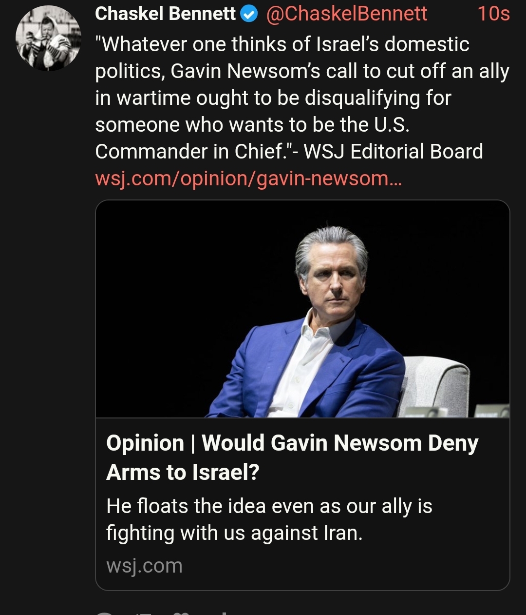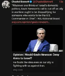 pleasantly surprised that newsom called israel an apartheid state and questioned US aid to it. of course, he's a mercenary who only said it no doubt because of opinion polls, but it's still a