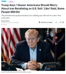 >When asked if he’s worried about retaliatory attacks on U.S. soil Trump responded “I guess,” and followed up with “Like I said, it’s a war. Some people die.”https://people.com/trump-says-i-guess-americans-should-worry-about-iran-attacks-11920588Something something “your government cares about you and does all this imperialism for you!”