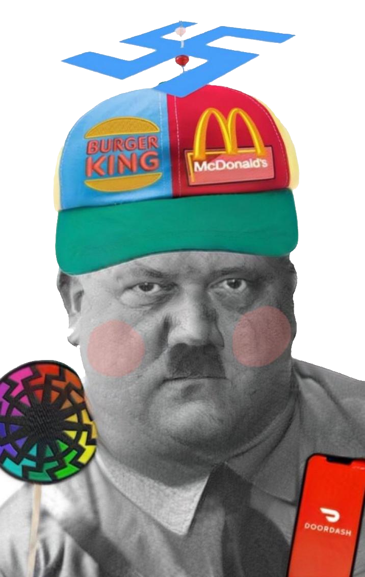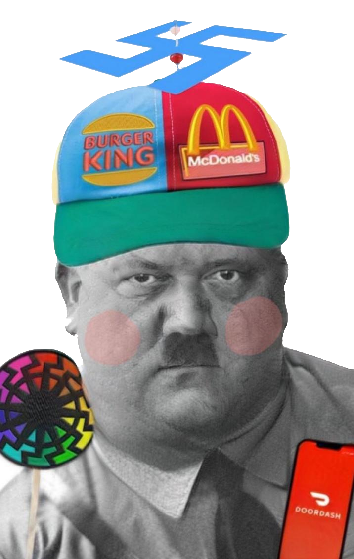The treats of the shop, of the dough, oh so sweet, must be destroyed to keep up the reich. And this is the shartest, burgerest thing of all. Carloads of Dunkin'® dumped in the trash. The treatlers came for miles to pick up the sweets, but this could not be. How would they buy donuts at 10 bucks a dozen if they could drive out and get a handout? And soyllenial wagecucks wrap trash bags around the donuts, and they are angry at the crime, angry at the treatlers who come to get the donuts. A million treatlers hungry, needing the donuts - and trash bags wrapped around the doughy mountains. And the smell of ozempic fills the burgerreich. Burn burgers for fuel in the ships. Burn fries to keep warm, it makes a hot fire. Dump chicken tendies in the rivers and place guards along the banks to keep the hungry people from fishing them out. Slaughter the pigs and bury them, and let the bacon grease drip down into the earth.