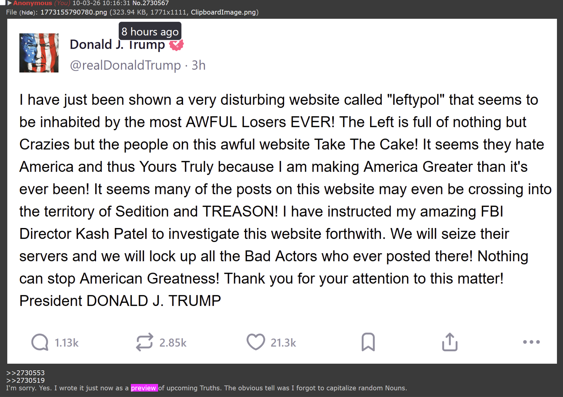 >The thesis we have advanced about the settleristic and non-proletarian nature of the U.S. oppressor nation is a historic truth, and thereby a key to leading the concrete struggles of today; self-reliance and building mass institutions and movements of a specific national character, under the leadership of a communist party, are absolute necessities for the oppressed, for without these there can be no national liberation. This thesis is not "anti-white" or "racialist" or "narrow nationalism," rather, it is the advocates of oppressor nation hegemony over all struggles of the masses that are promoting the narrowest of nationalisms - that of the U.S. settler nation, and when we say that the principal characteristic of imperialism is parasitism, we are also saying that the principal characteristic of settler trade-unionism is parasitism, and that the principal characteristic of settler radicalism is parasitism. >>2731344if trump posted that he would be right for calling us losers