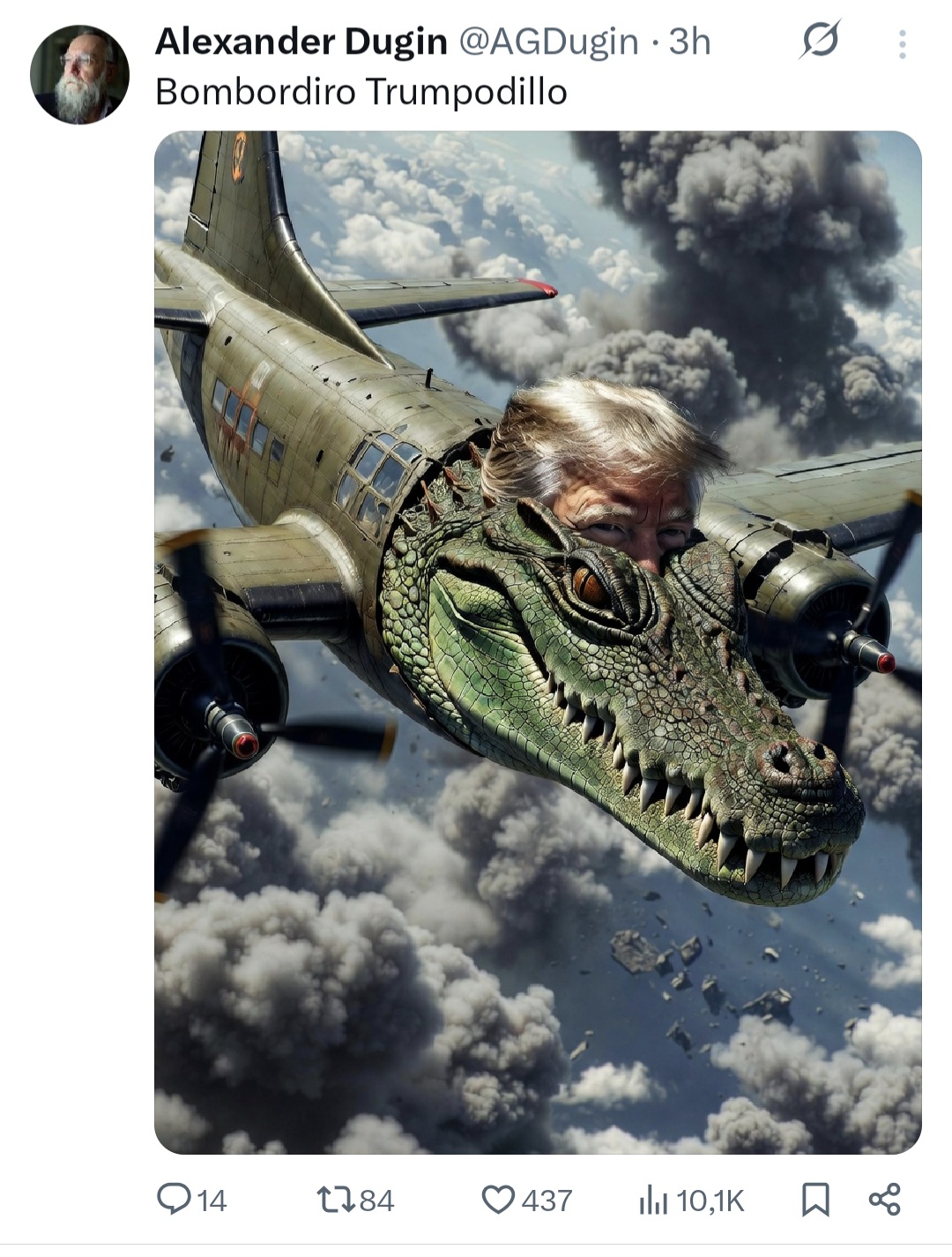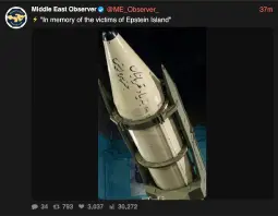 The US president is then shown going haywire and ordering strikes on Iran, apparently implying that the attack was meant to distract everyone from a domestic scandal involving the late sex offender’s ties with American elites.