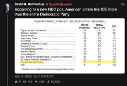 https://yougov.com/en-us/daily-results/20260301-8e907-1 >>2731520>GOP +59<Dem -32this is why the democrats must never be allowed to take power again. harm reduction forces us to live with this awful system longer. We need full speed ahead. Crash the country with no survivors.
