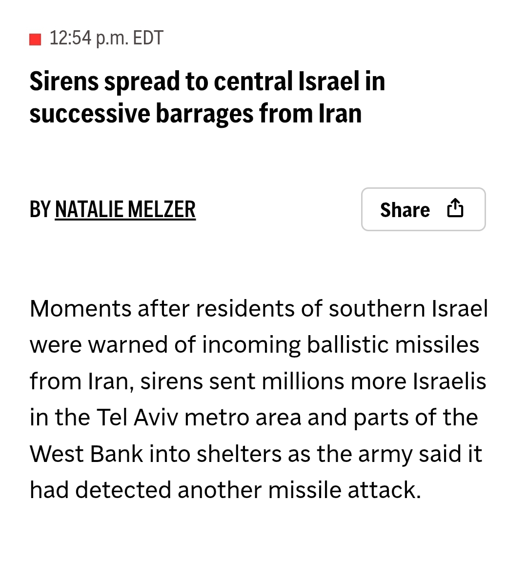 >>2727718Israeli Home Front Command: Missile launches detected from Iran; alerts activated in Ashkelon, Ashdod, Tel Aviv, Jerusalem, and the West Bank
