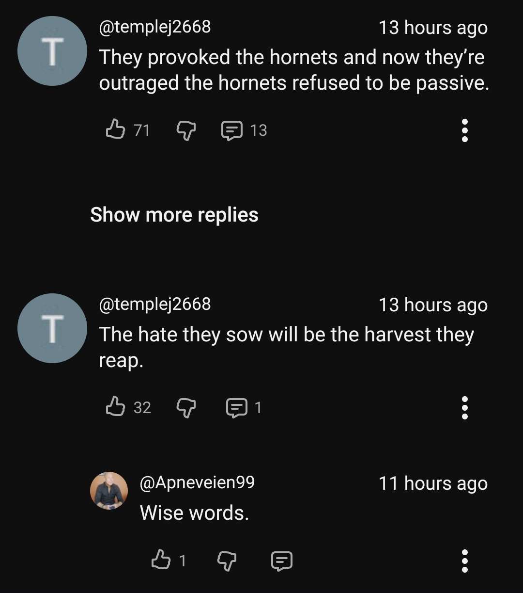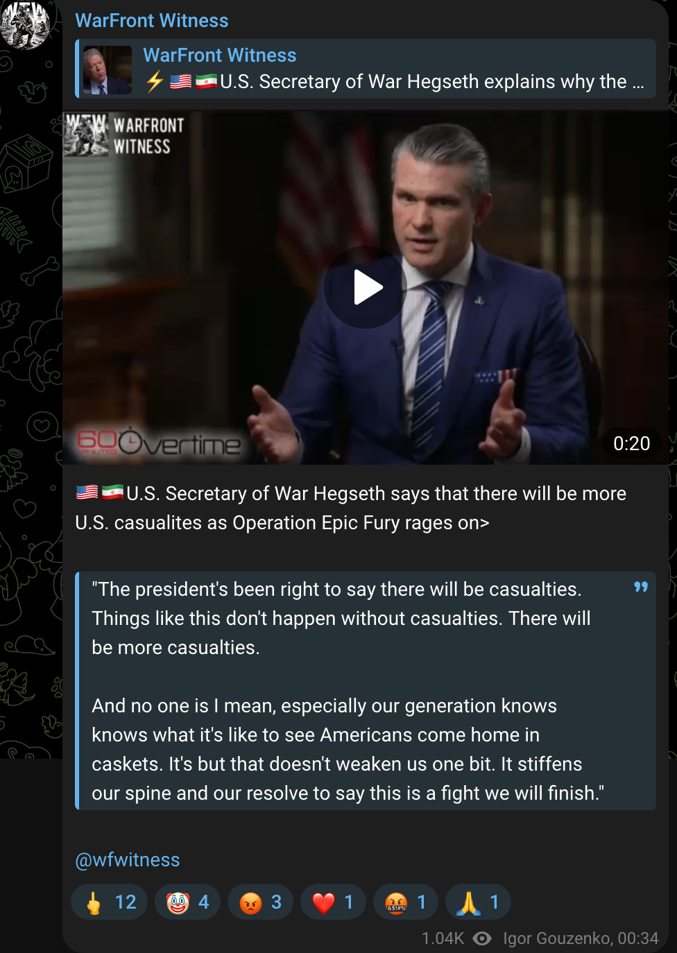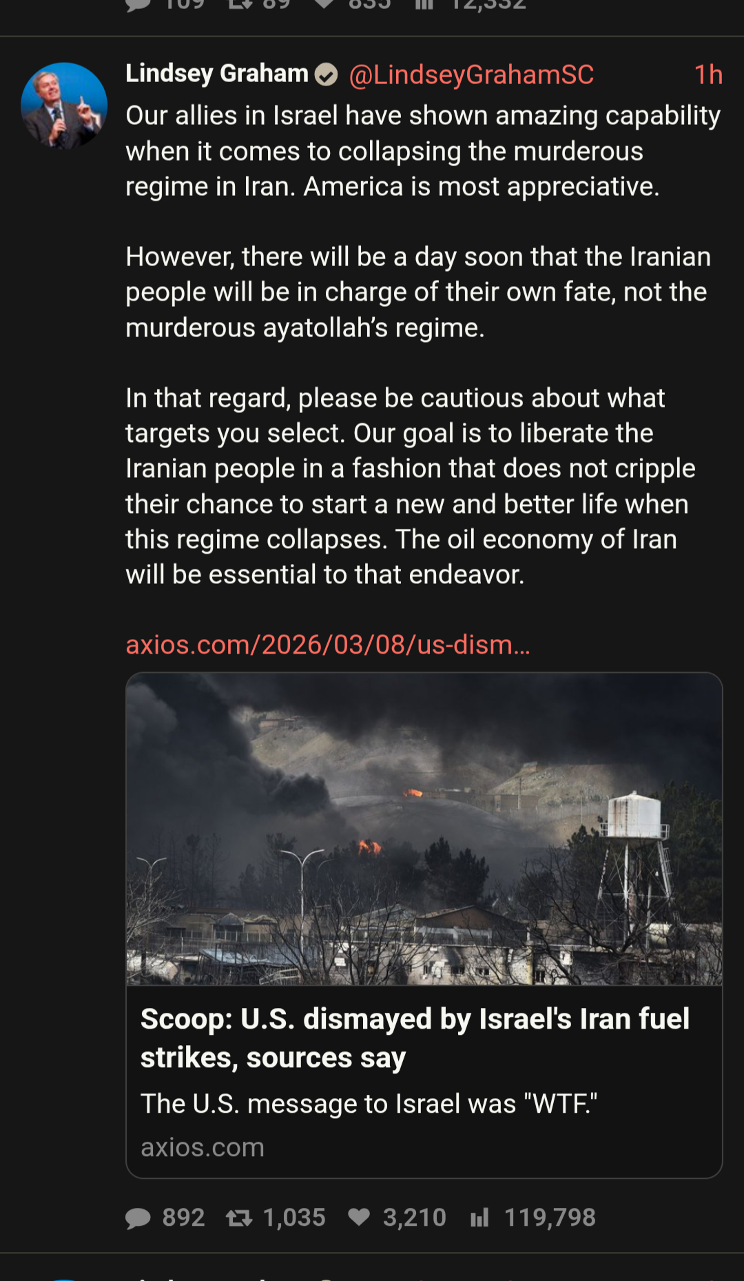>>2728889There was a thread on /r/worldnews when the war first started and the top voted comment was about how Iranians are barbaric for attacking Israeli civilian infrastructure even though Israel started the war. I commented under it about Israel/US bombing that girls school and got banned from /r/worldnews for "misinformation" and a moderator bot commented under my deleted post about how it was actually an Iranian missile misfire…as reported by Israeli media outlets.