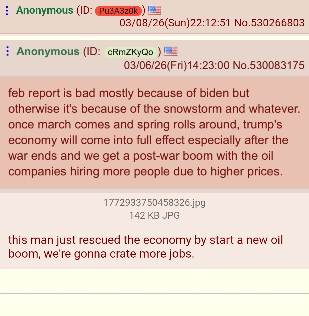 >While China would suffer from oil outages, a Middle East crisis with disproportionate LNG outages might benefit the PRC. Natural gas accounts for a relatively small share of China’s primary energy consumption, the country enjoys substantial domestic production, and it can tap pipeline imports from Russia, Central Asia, and Myanmar. Significantly, many of the PRC’s competitors or rivals—the European Union, Japan, South Korea, and Taiwan—are substantially or even wholly reliant on LNG imports for their natural gas consumption. Dutch TTF natural gas prices are up more than 50 percent against last Friday’s close, fueling concerns of an energy-induced inflationary spike. In addition, LNG outages in Qatar, the world’s second-largest producer, would benefit the US LNG complex—and fuel accusations that Washington was reaping windfall benefits from a war it started. Beijing may therefore judge that another LNG-tinged crisis would impose little economic cost on it while potentially further antagonizing Washington’s already-fraught ties with its allies. https://www.atlanticcouncil.org/dispatches/what-a-middle-east-oil-and-lng-crisis-means-for-china-and-east-asia/ It"s time to stop analyzing trump and start analyzing the brains of the retarded american cattle who are doing nothing