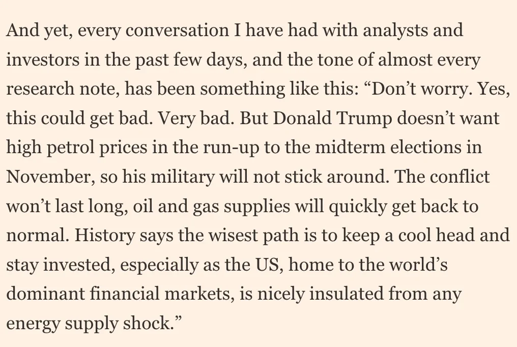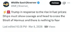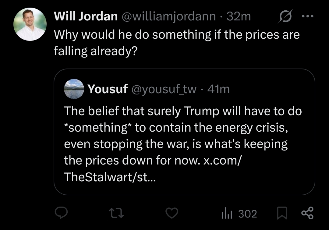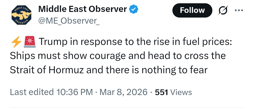 >>2728751Iran needs to keep Hormuz closed at least six months to make the situation critical for America. The markets are still showing skepticism about Iran's grit. $20 was wiped off Brent on the mere rumor of oil reserves opening. We haven't even reached the 2022 $140 yet for the Russian SMO, and maybe the memory of how that all worked out with the Cucktrine doctrine of sending oil/gas to the enemies is contributing a lot of optimism in this case that Iran will cuck too under pressure from its partners.